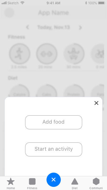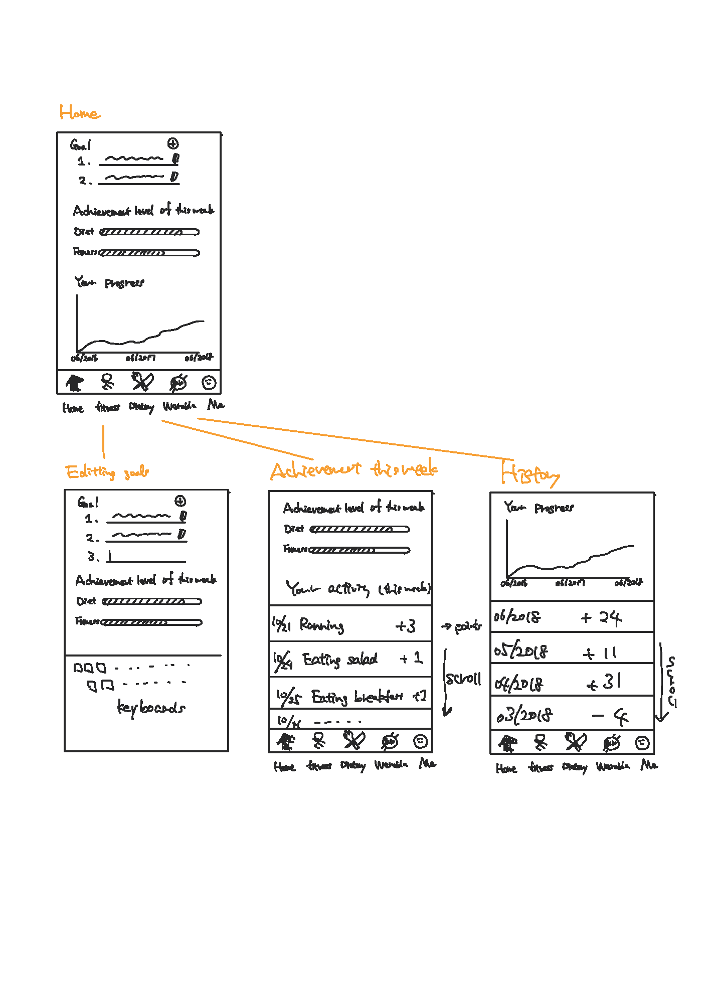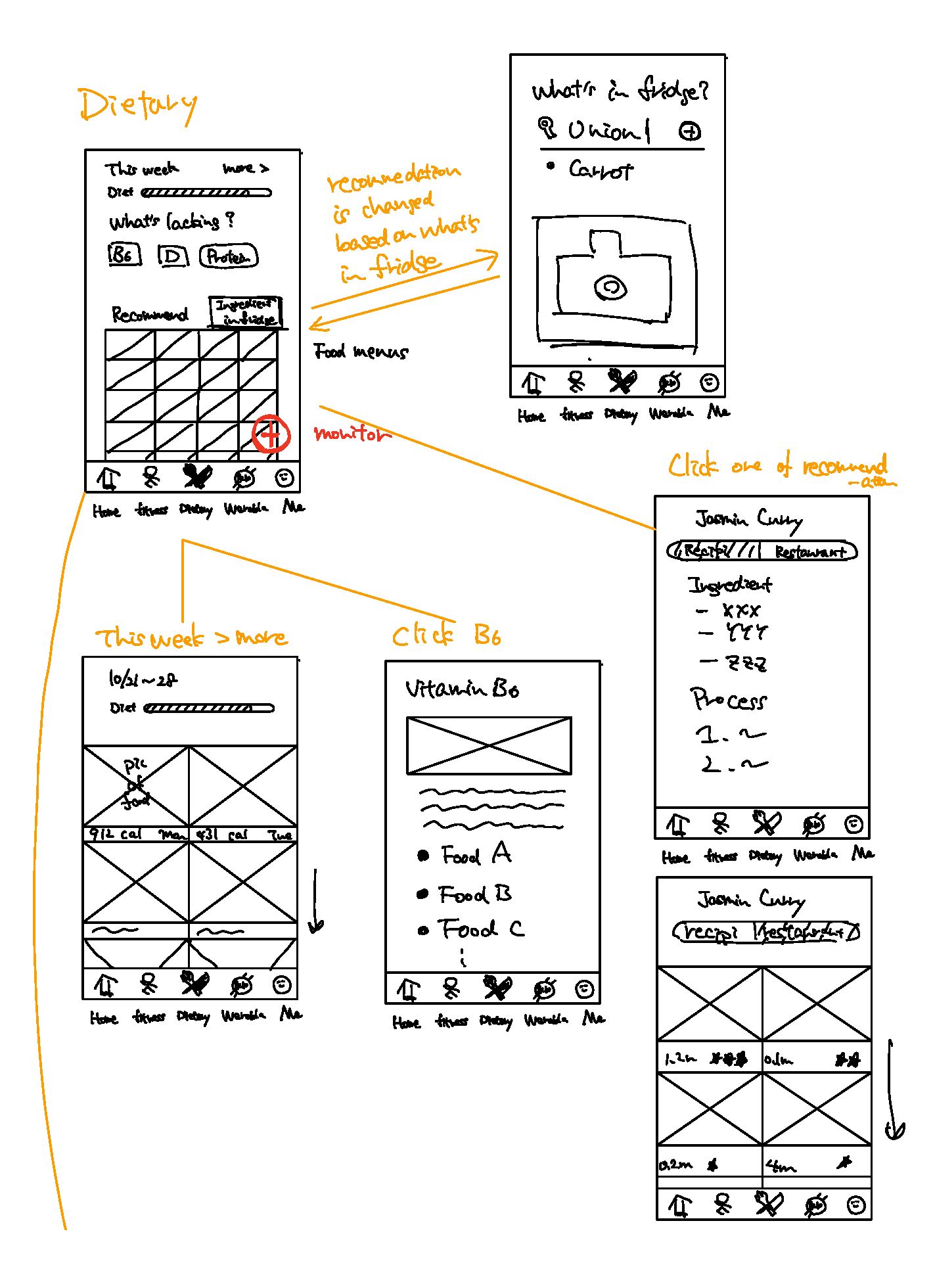 Users can monitor their fitness and dietary. (Scan a food or start an activity) ->