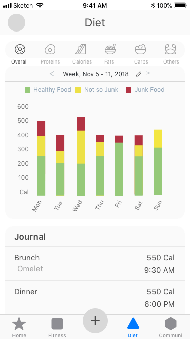 Throughout the entire UX design process, I could have a practical experience in how to comprehensively and logically connect research, ideation, sketching, designing and user testing. As FiDi focuses on the integration - fitness and diet -, it was not easy to narrow down our scope and decide the design requirements. And on the user testings, many participants were confused about where to find the desired functions, because it can be in the fitness, the diet, or the community section. But finally I think our app successfully integrates the aspects of both diet and fitness, and provides a comprehensive experience about users’ health.